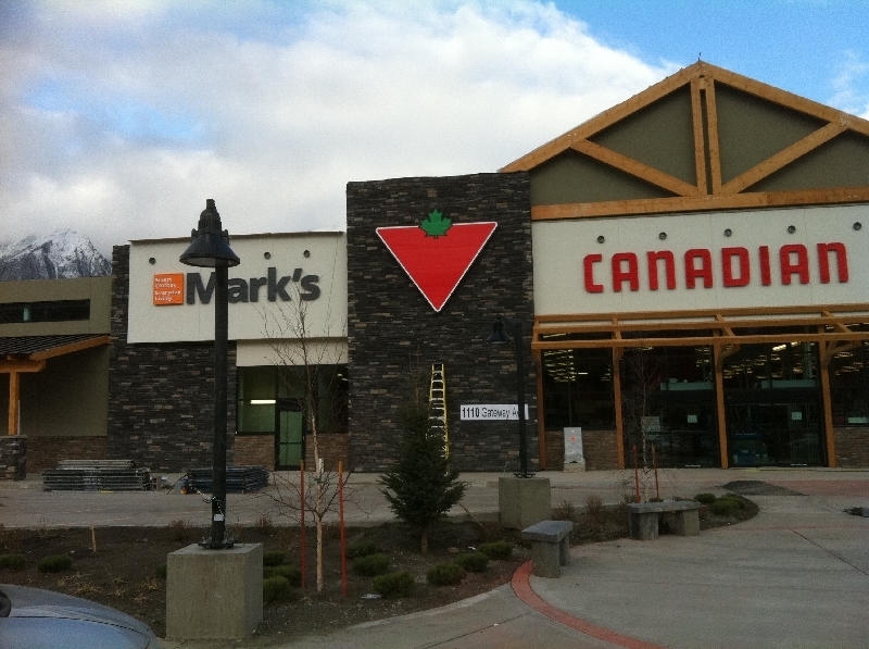This Canadian Tire store was done with a beautiful storefront including a wood facade and decorative stone veneer to match the Town of Canmore's quaint, rustic feel.